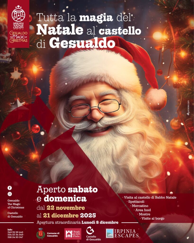 Il Castello di Gesualdo resterà chiuso alle visite ordinarie dal 20 ottobre 2025 al 10 gennaio 2026 in occasione dei Mercatini di Natale.